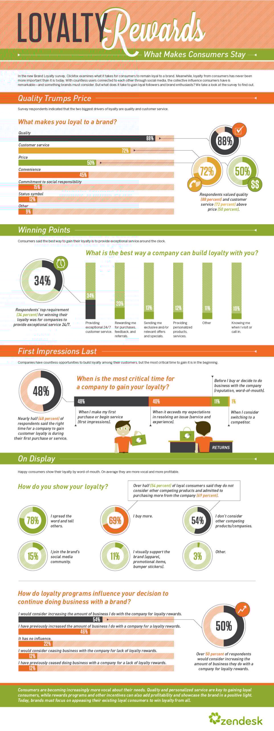 This infographic from Zendesk explores what drives brand loyalty, the impacts of customer loyalty programs, and how customers share their brand experiences through word of mouth referrals.