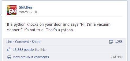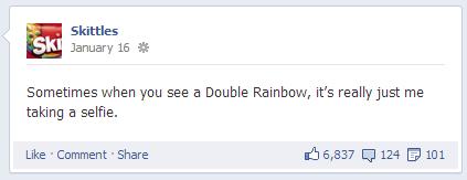 Are those the kinds of posts you’d expect to see from a candy company? Definitely not. But they work well for a company whose current slogan is “Taste the Rainbow.” So what exactly is Skittles doing right?